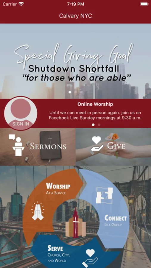 Calvary is committed to engaging NYC and impacting the world with the message of Jesus Christ. Once you download this free app you'll be just a tap away from weekly sermons, event registrations, family ministry updates, and online giving. The Connections Tab keeps you updated on our family, youth, young adult, men's, women's and senior ministries.