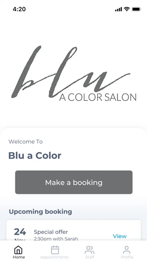The Blu a Color app makes booking your appointments and managing your loyalty points even easier. You're just a few taps away from feeling good and looking great!