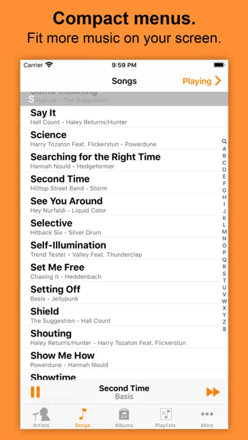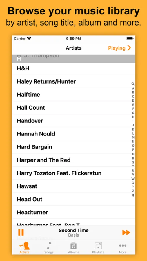 - Easily browse your music library - by artist, album, song title, playlist, genre and composer
