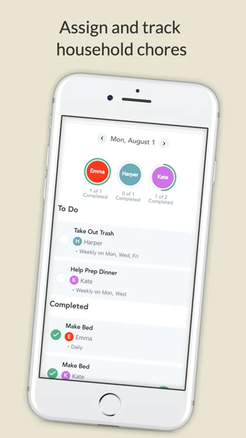- Chore Chart: Assign, check-off, and track household chores