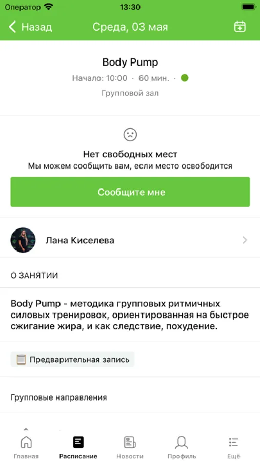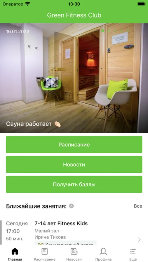 С помощью приложения вы можете следить за новостями, расписанием фитнес клуба, оперативно получать информацию об изменениях в расписании и специальных предложениях. У Вас будет Личный кабинет, в котором удобно отслеживать накопление баллов для оплаты услуг фитнес клуба.