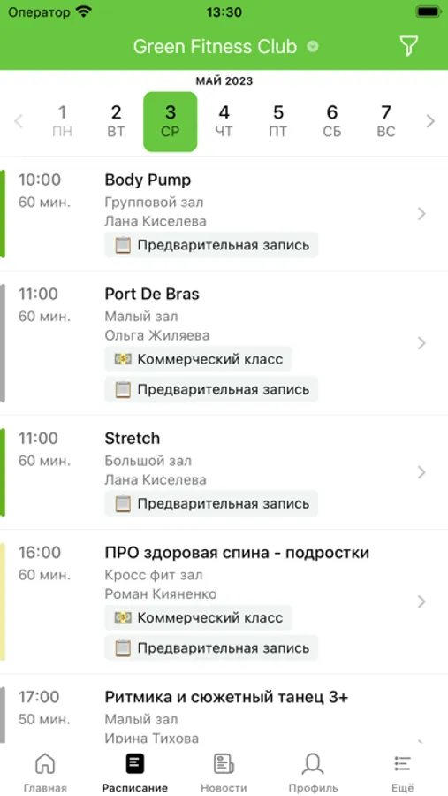 В Green Fitness Club вы найдете фитнес для мужчин, женщин и детей на любой вкус: тренажерный зал, залы для аэробики,групповые и индивидуальные занятия, фитобочку, массаж, услуги косметолога и многое другое. Вы получите всё что вам нужно в одном фитнес клубе!
