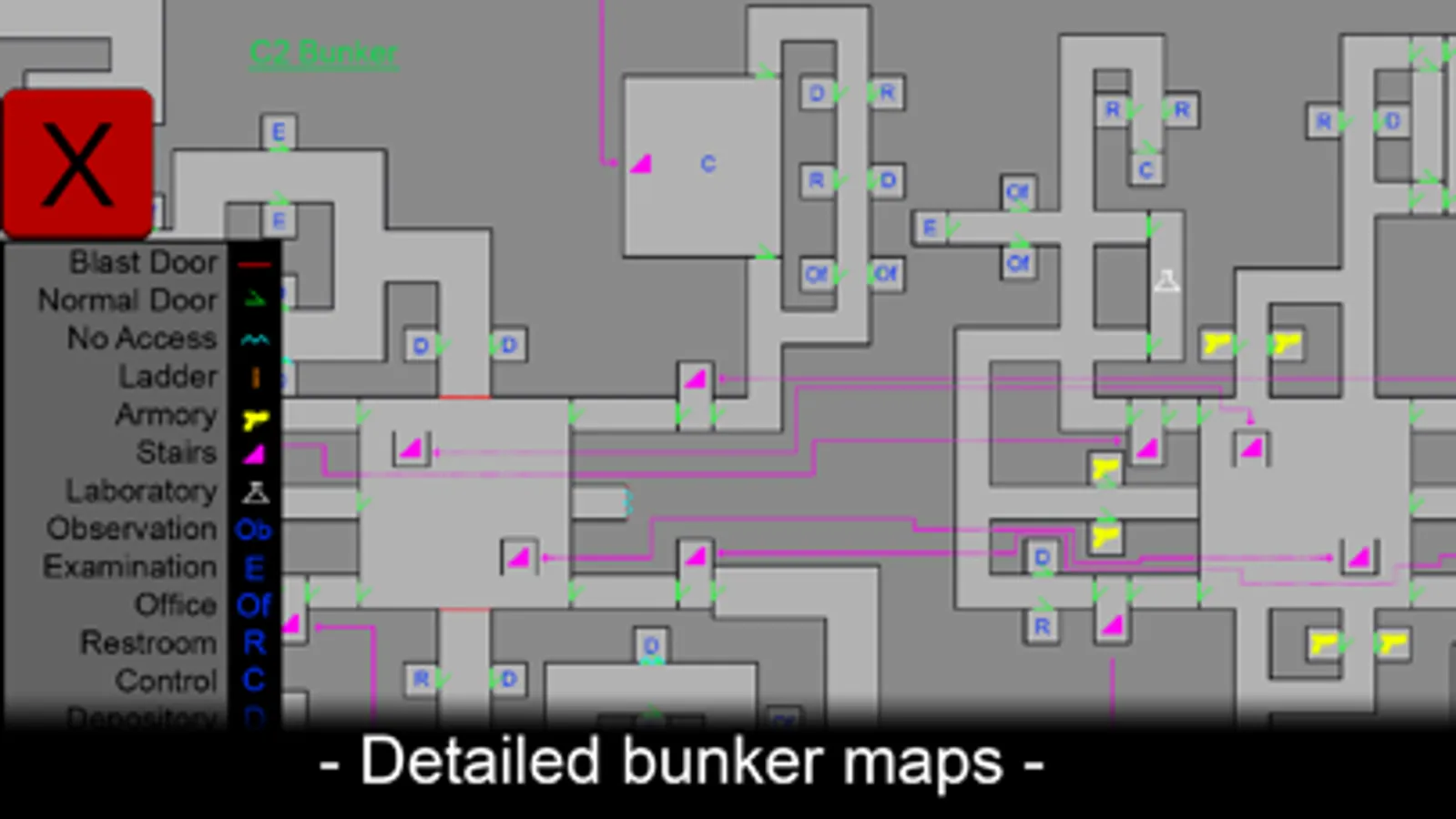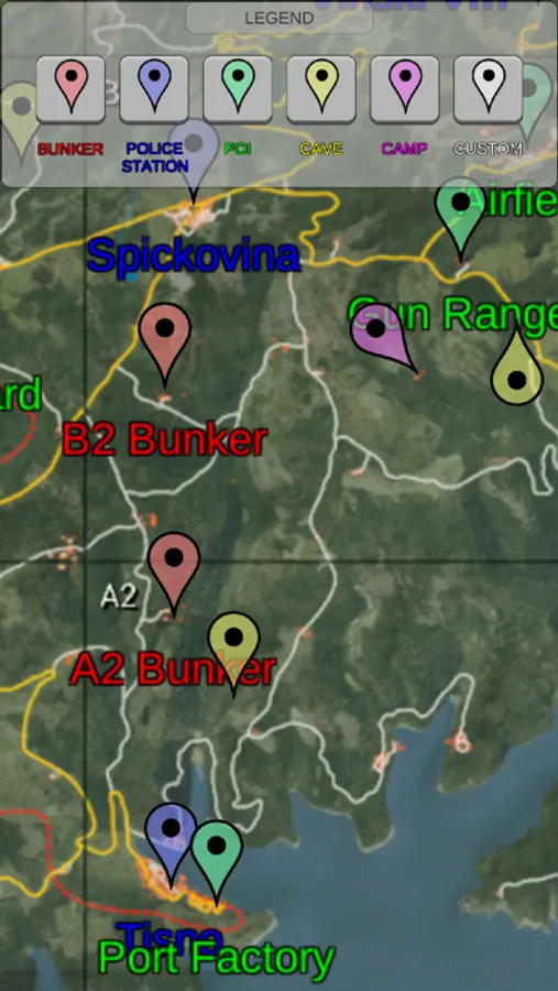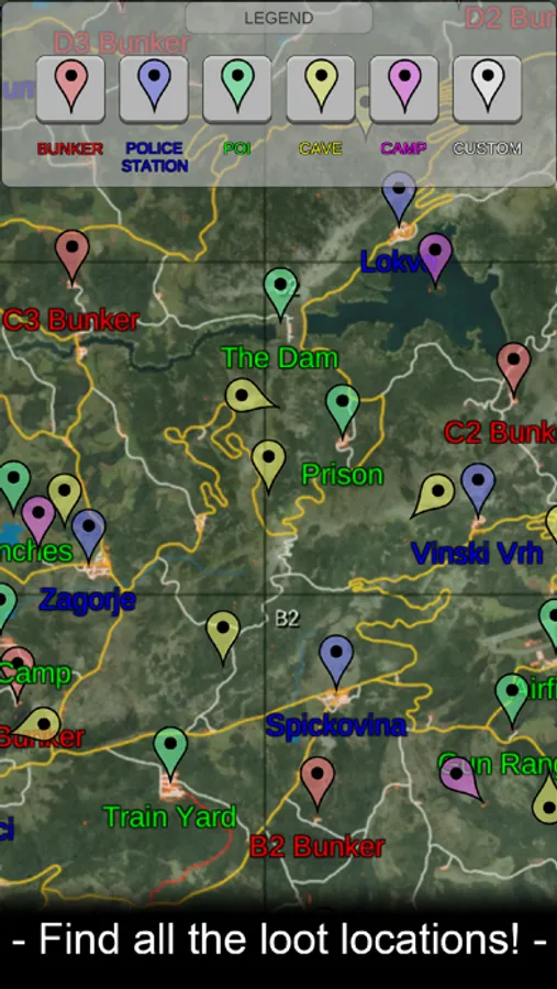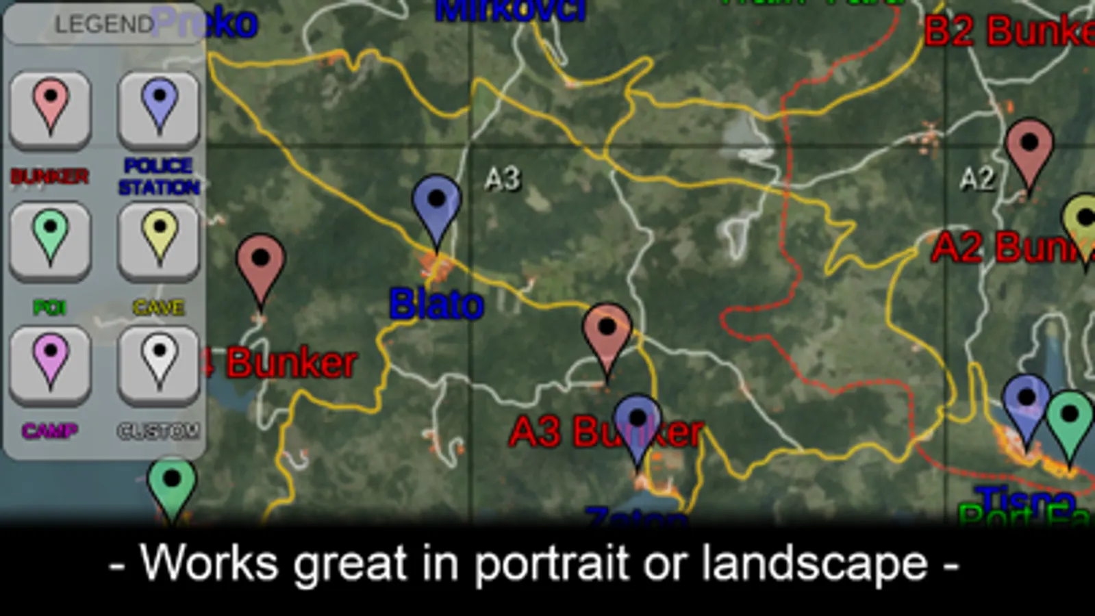 - Lists all bunkers, known caves, police stations, and points of interest