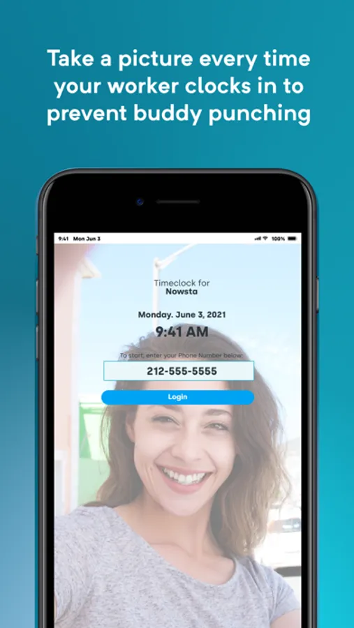 To ensure no buddy-punching or time theft occurs, the app automatically records a picture of the staff member when they clock-in and clock-out.