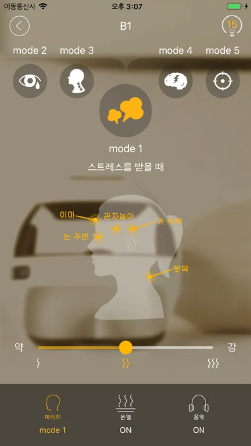 4. 3단계 강도, 음악플레이어, 온열 기능을 하나의 어플에서 컨트롤 가능
