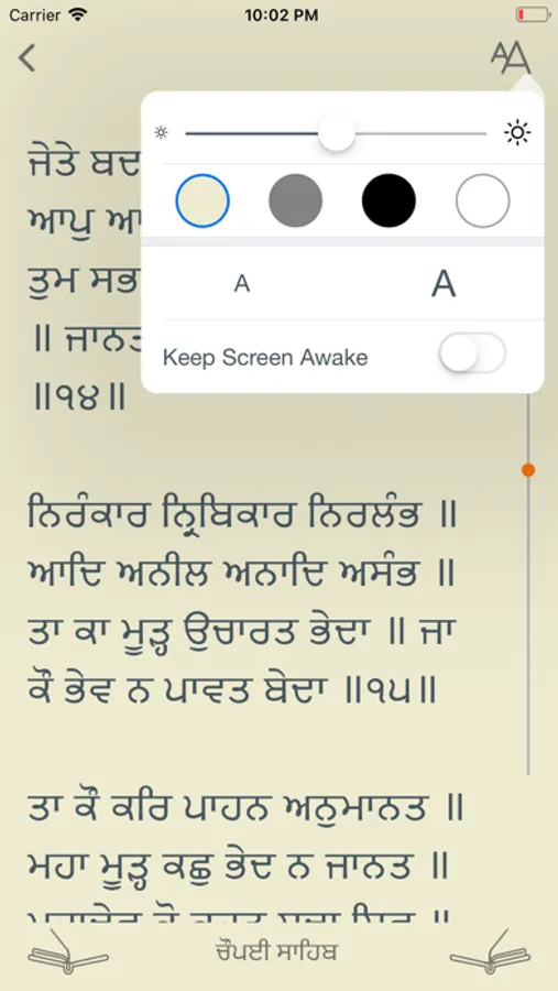 Read 16 banis in the Sundar Gutka, which features a modern reading experience that lets you change screen color and brightness, change font size, or keep the screen awake.