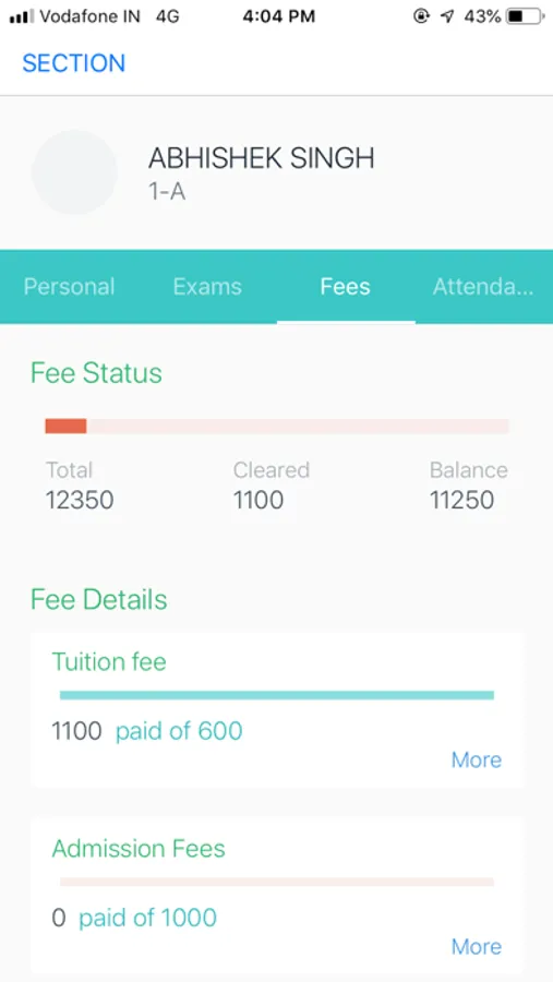 View Students Profile, Fees Summary, Exam Results, Attendance