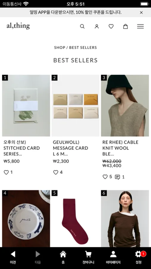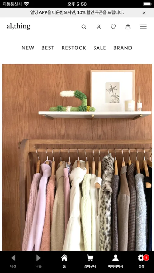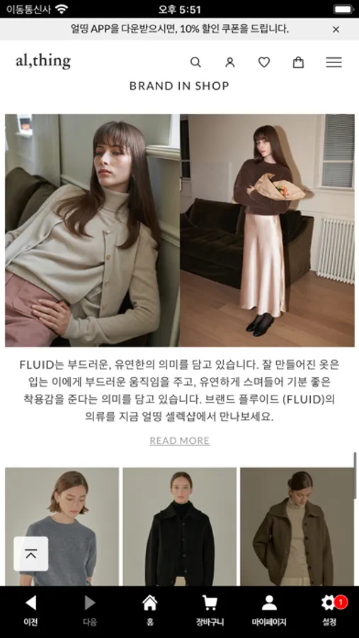 본 APP은 웹사이트 쇼핑몰과 100% 연동되어 있어