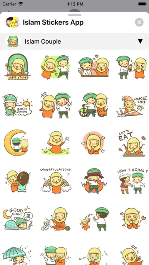 • Find new stickers—First tap the App Store icon, then tap the 4-ovals icon in the lower left to bring up the app drawer. Then, tap the + icon to access the Store.