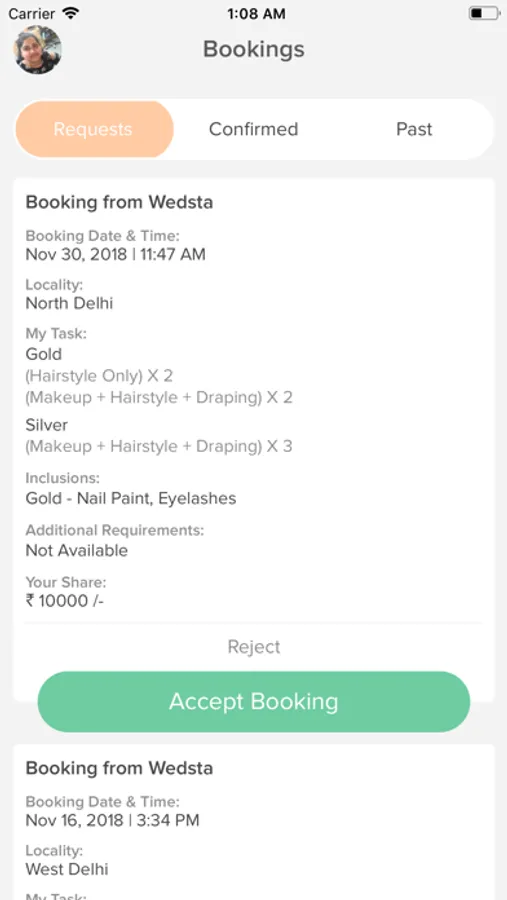 - Accept or Decline New Requests: You can view details such as Location, Date etc for every new request & choose to accept or decline the booking.