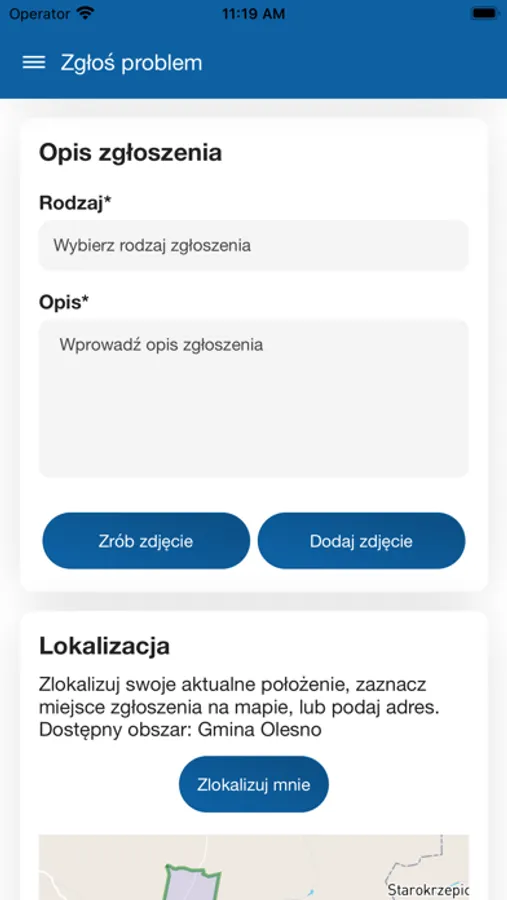 Aplikacja w bardzo prosty sposób pozwala na zgłaszanie różnych problemów czy usterek.