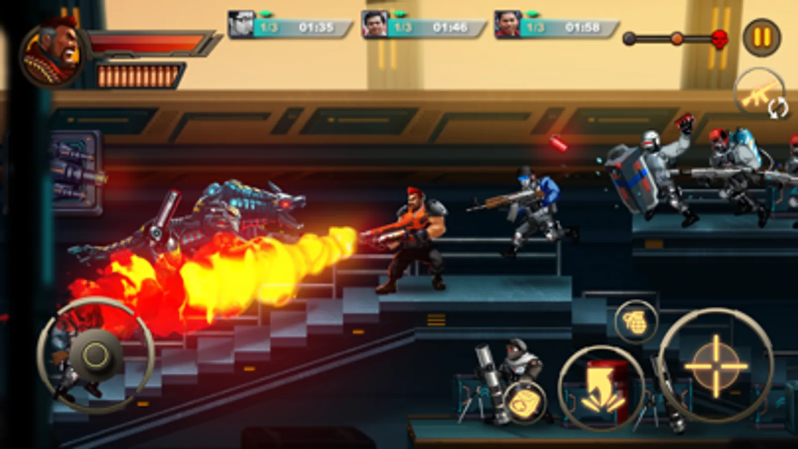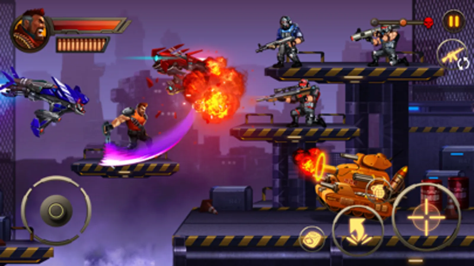 Metal Squad is a shooting action game. This game will take you through series of classic levels, various enemies and boss battles with amazing experience of side scrolling platformer games. Use various weapons filled with slug and power ups to fight your way through a multiple enemies, metal tanks, copters and put an end to the evil army leader's and his world of terror.