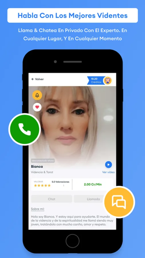 -Todos los asesores tienen una descripción corta, en la que se presentan, y explican cómo puedes proporcionarte las mejores lecturas, las herramientas que usan. Además, podrás ver un vídeo de presentación, disponible en el perfil del experto seleccionado, para conectar mejor con ellos.