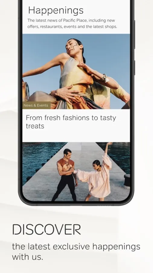 1) Gain access to mall information, latest news and events at Pacific Place, and our loyalty programme, above. Collect points and redeem rewards as an above member to enjoy an elevated guest experience.