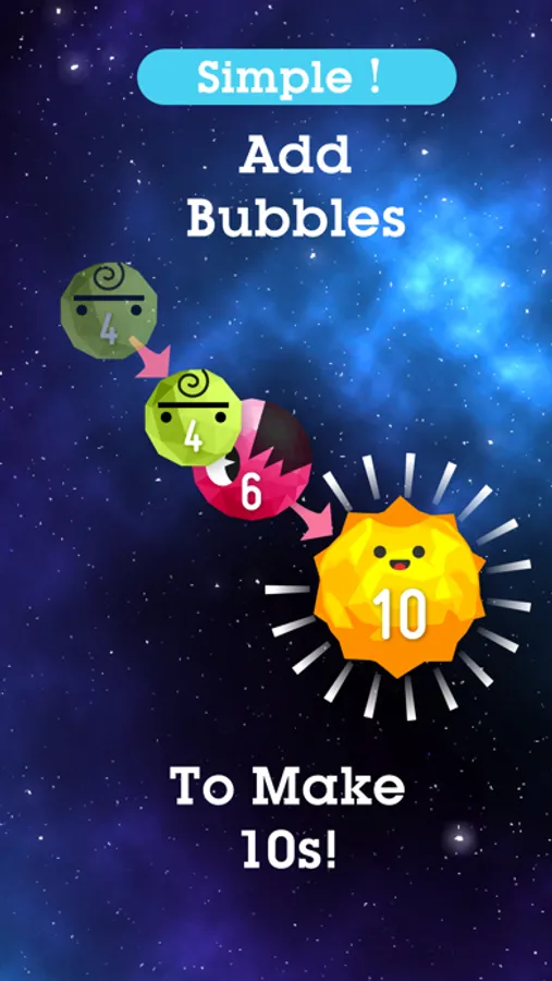 SUM! Planets is a very simple falling bubble game. Find a pair to make a ten as quickly as you can. Sounds easy? Then you'll find it IS harder than you think when it gets fast and won't be able to stop playing this game.