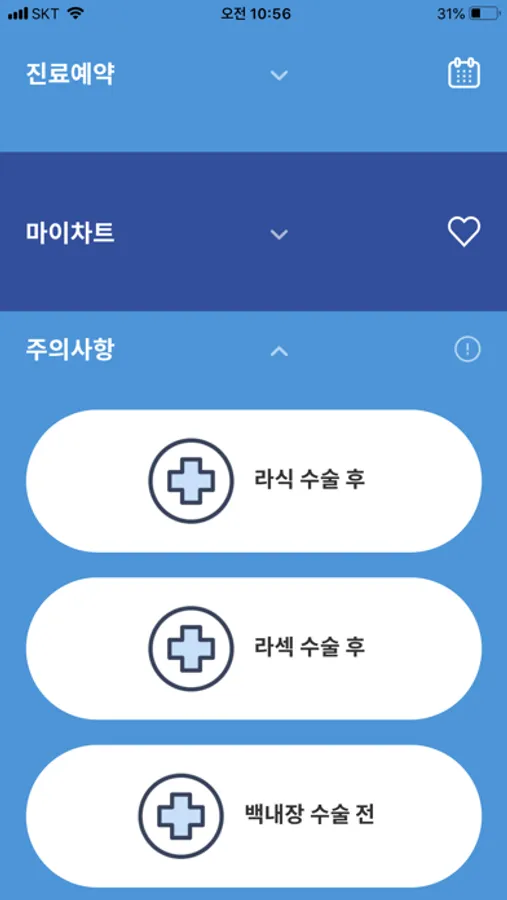 온라인 예약, 온라인 상담, 내원 관리, 검사정보, 수술정보, 수술 주의사항, 실시간 상담 등의 기능을 제공합니다.