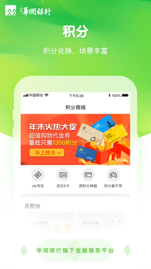3、 积分商城:华润通积分优惠商城,提供积分充值缴费、积分互通、积分换购礼品,更有签到送积分、积分游戏等活动;