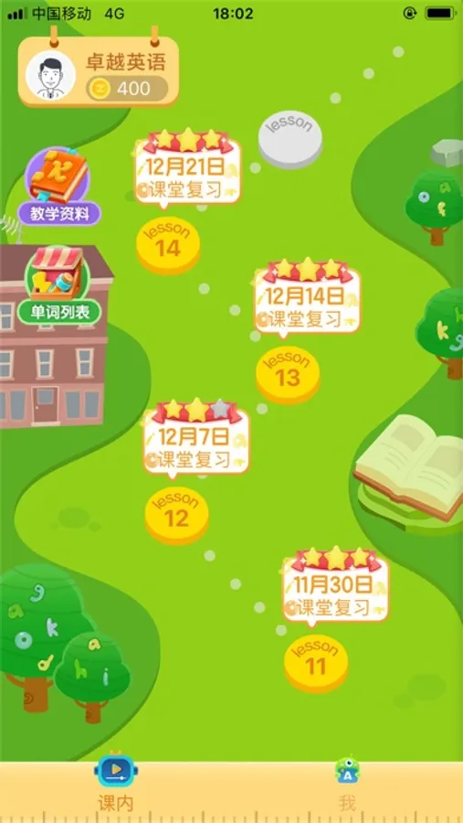 预习功能:想在课前先预习但没老师指引?卓越英语APP提供单词打卡和话题预习的预习功能,方便学生快速有效,随时随地复习下一节课的主要内容。