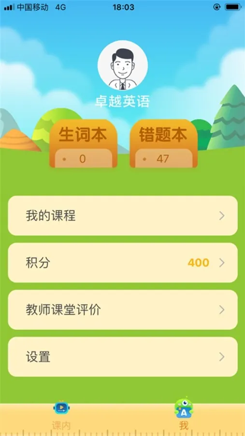 学习反馈:学习反馈集中看,通知提醒不费劲。学习反馈将为您展示孩子在卓越英语课堂上的学习报告,预习复习进度和完成度提醒,在线通知提醒,让家长随时随地全面了解孩子学习综合情况。