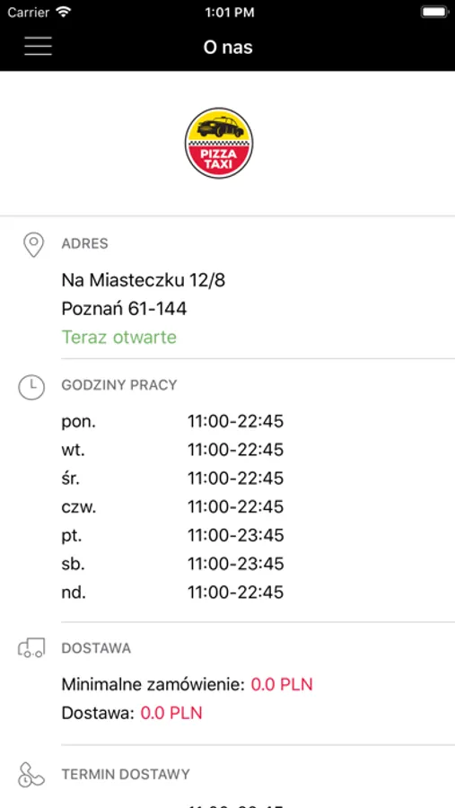 Oprócz zamawiania online aplikacja pozwala sprawdzić: