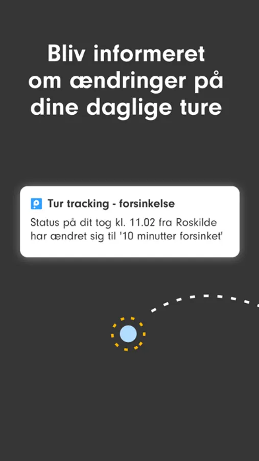 Ping tracker trafikken på dine udvalgte daglige ture og sender dig notifikationer direkte til din telefon, hvis der sker ændringer såsom forsinkelser eller aflysninger. Ping hjælper dig også videre med alternative turforslag, hvis uheldet er ude og dit tog er forsinket eller aflyst.