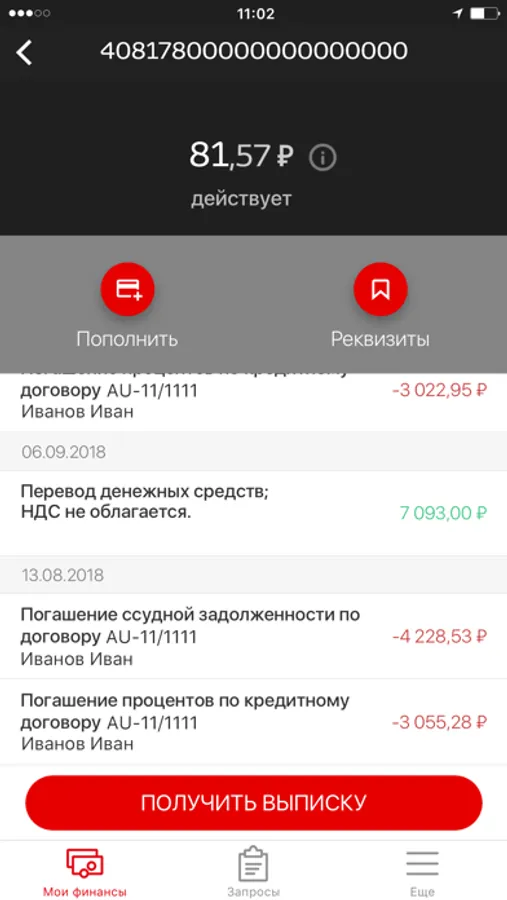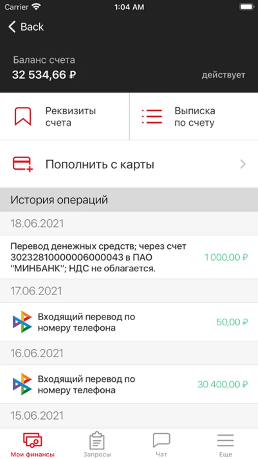 отслеживать информацию по счету (зачисления, списания, остаток на счете)