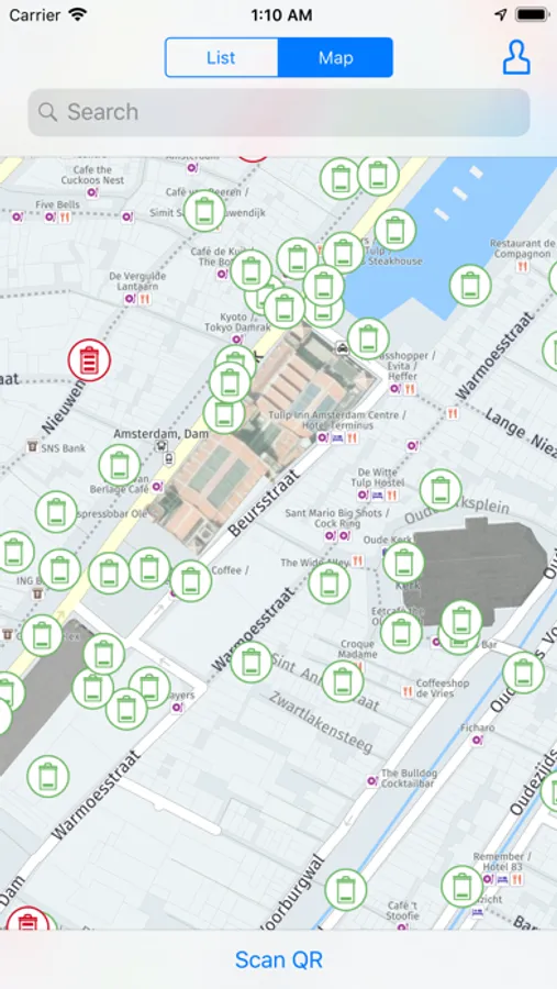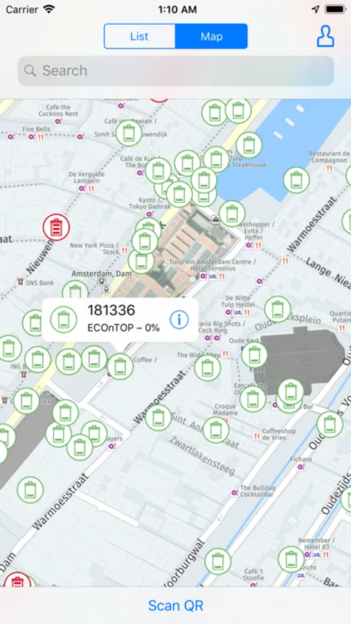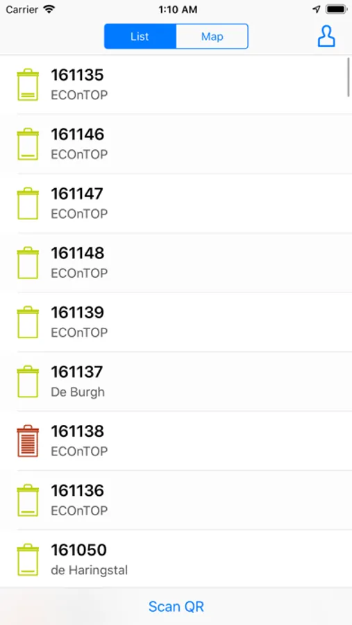 - Display of bins in list or map view.