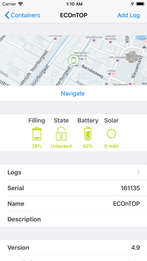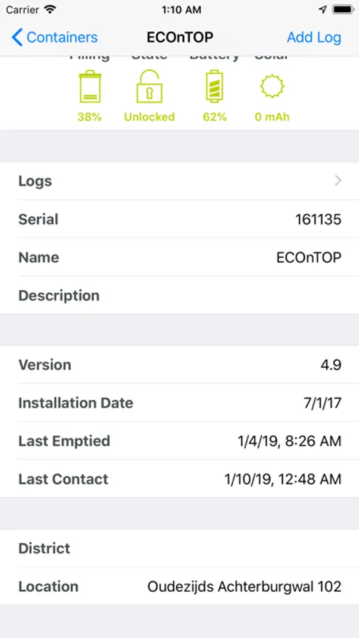 - Real time data of filling, battery levels and usage.