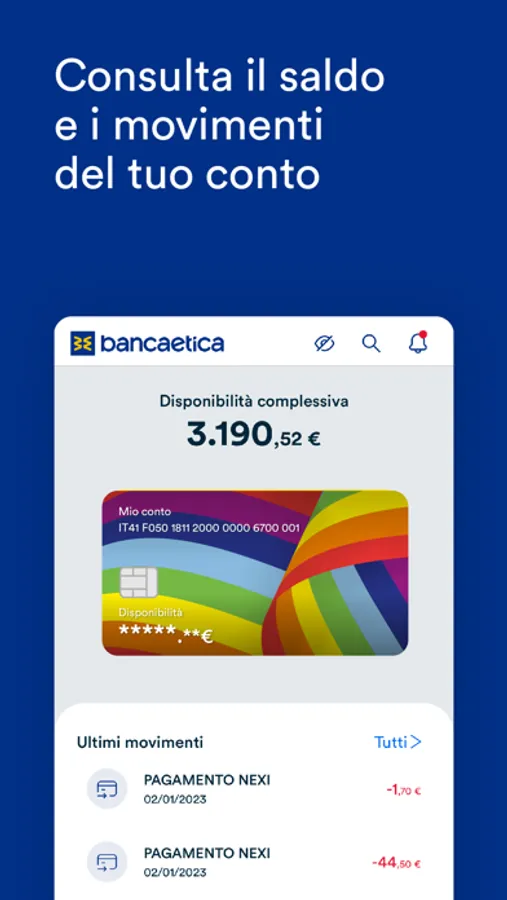 Consulta il saldo e i movimenti dei tuoi conti correnti.