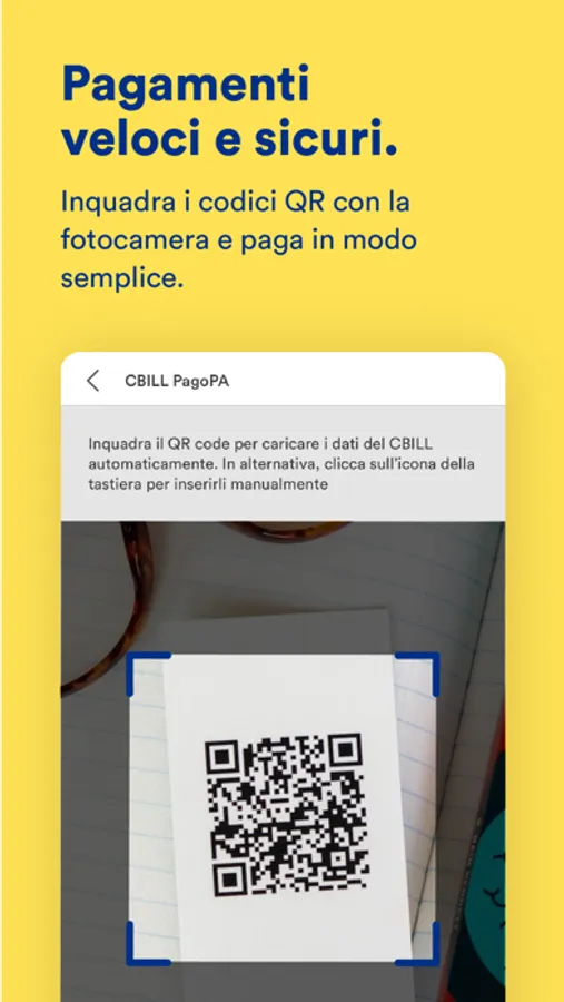 Inquadrando i codici QR con la fotocamera, fai pagamenti veloci e sicuri anche per: bollettini postali premarcati, MAV, RAV,CBILL,