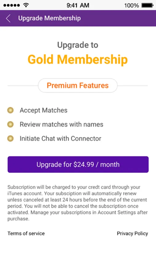 If you subscribe to membership plan(s) via iTunes, payment will be charged to your iTunes Account at confirmation of purchase and your membership will automatically renew monthly unless turned off at least 24 hours before the end of the current period. Subscription will be renewed within 24-hours before the end of each period at the rate of your selected plan. Turn off auto-renewal anytime by going to "My App payment history" or through iTunes.