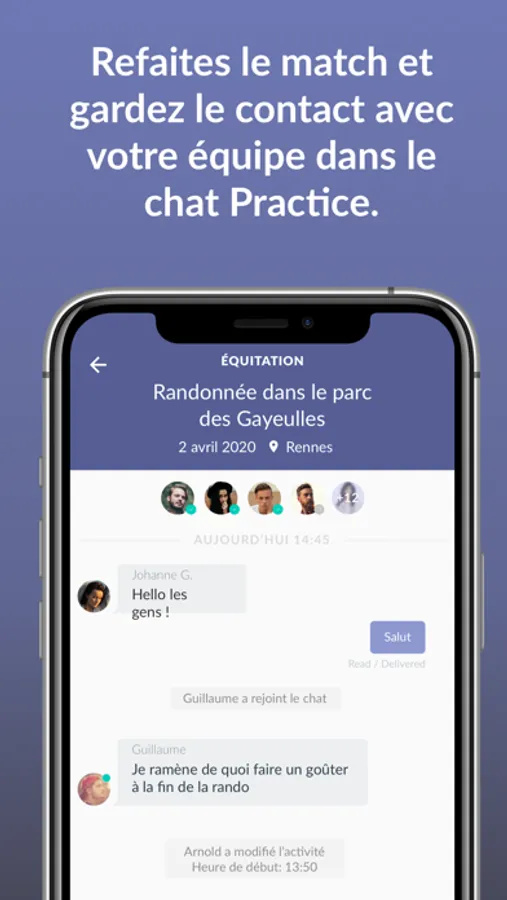 - Chat : Discutez de l’organisation de votre activité avec les participants et refaites le match après !