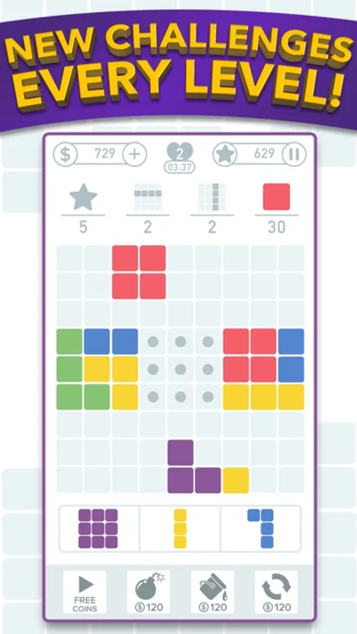 - Can't figure out your next block puzzle move? Use coins to get a powerup and win the level!