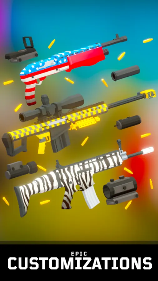 ● Free game: 12 incredible weapons, 6 essential add ons, beautiful gun skins and playful arenas for maximum fun!