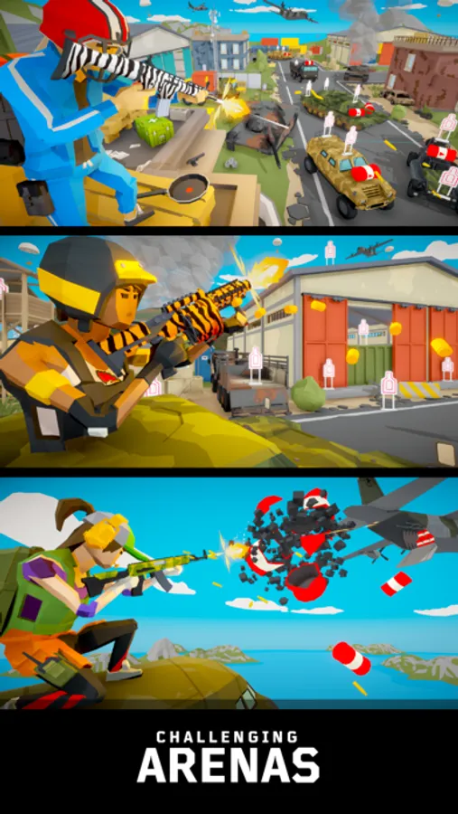 ● Multiple challenging ARENAS: test your favorite GUNS on TARGETS and BARRELS