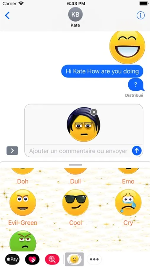 * Drag and drop animated emojis all over iMessage. Super cool. Place on top of your friend's messages or pictures.