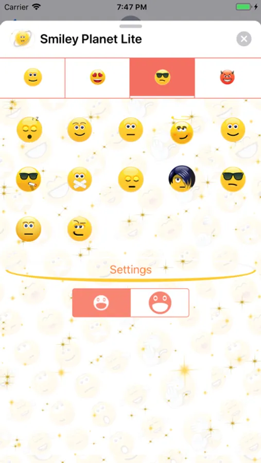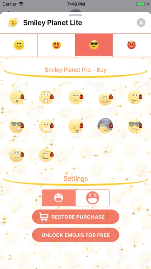 * Only 3 emojis are initially free, You can purchase the locked emojis, or you can go to the main app and watch Video Advertisement and unlock the emojis for free.