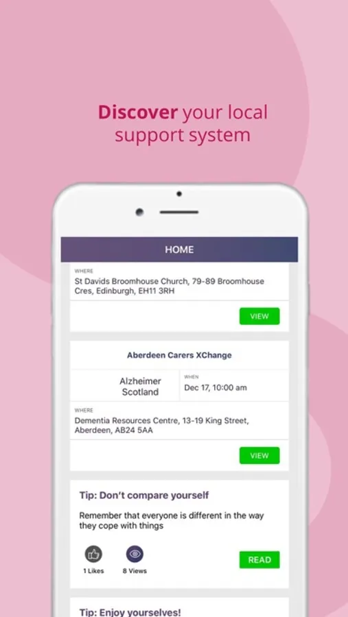 Additionally, you can also use CogniCare to explore activities for people with dementia and their carers to keep engaged and involved, both at home and in the community.