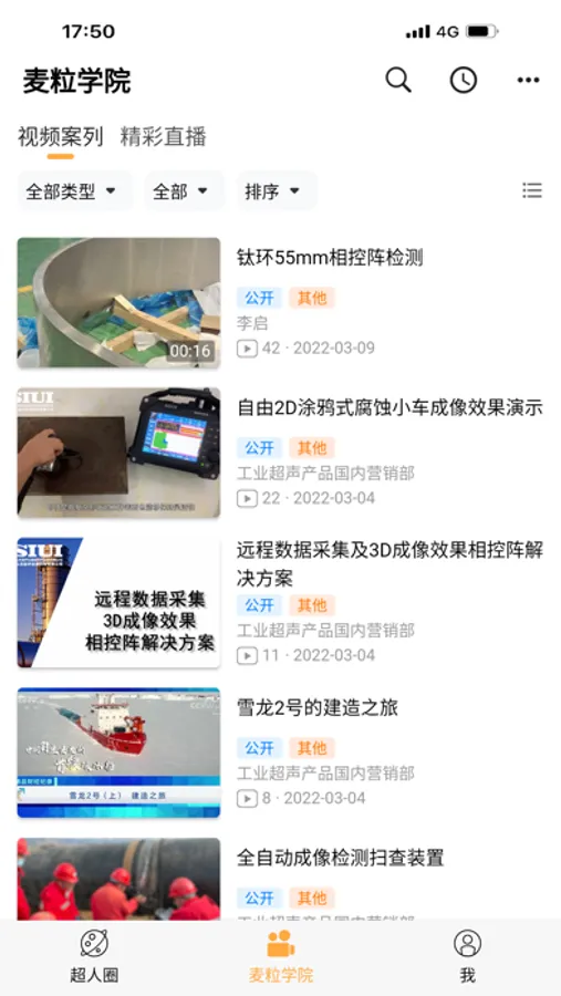 “麦粒 智检”是一款工业无损检测工作者的专用手机APP,用户可以通过“麦粒 智检”APP与行业专家、同仁进行技术交流、案例分享、远程教学、在线求助等。通过线上直播和会议,进行实时的远程教学和交流,让检测者拿起手机便可学习最新检测信息,能与五湖四海的超声同道线上共同体验和交流。因此,“麦粒 智检”APP深受广大无损检测工作者的喜爱,正成为越来越多无损检测工作者必备的专用APP。