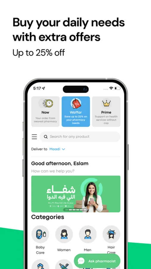 Order your medicine using the easiest to use pharmacy delivery app in Egypt and Saudi Arabia connecting pharmacies & patients.