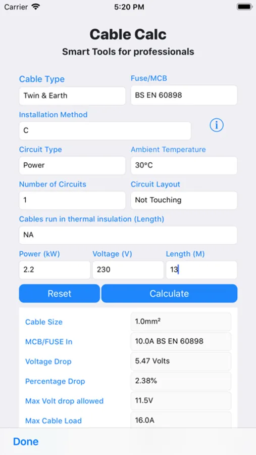 While we believe this to be an accurate tool, you should always double check the results yourself with BS7671.