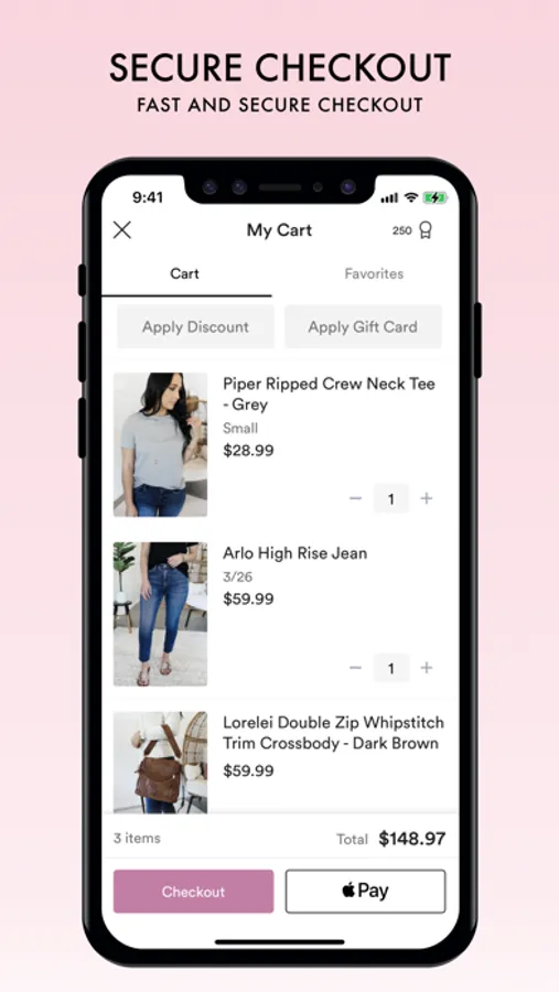 Tap, swipe, shop and secure your new products in an instant with our super easy checkout.