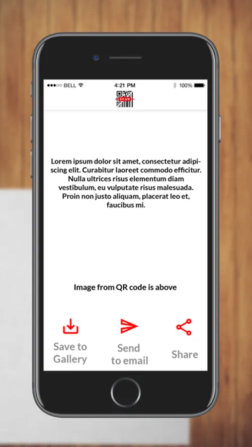 This app helps you read content from QR code or number from Barcode and convert it to image or PDF file. You can send results to email as text, image or PDF.