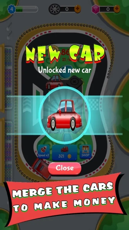Merge and upgrade your cars to make them run and make a fortune. You will collect money even when your idle. Let's Race!