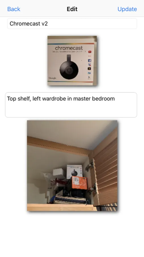When you have kept many objects in different places and locations, it can be very challenging to remember when you need them in the future. This problem becomes worse when the objects are seldom used or moved about over the course of time or when your memory fails you due to ageing. This app aims to help you to recall easily. Note the location where the item is kept. Take pictures of the object and its current location so you don't have to second guess any more and be frustrated by hours of searching. When the item is moved, update its new location.