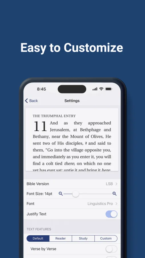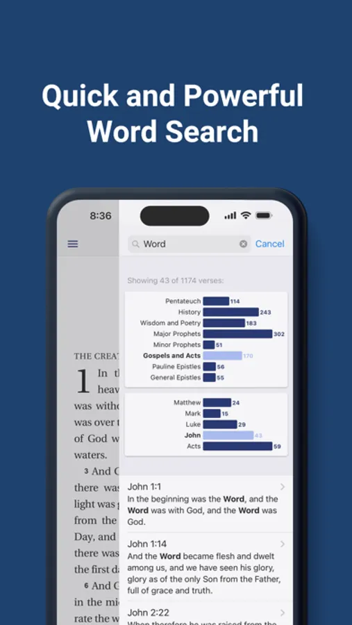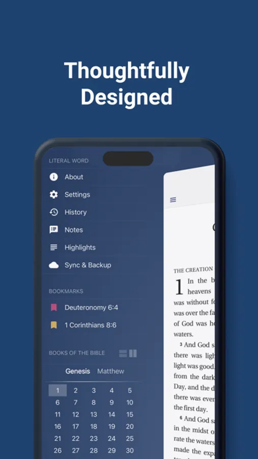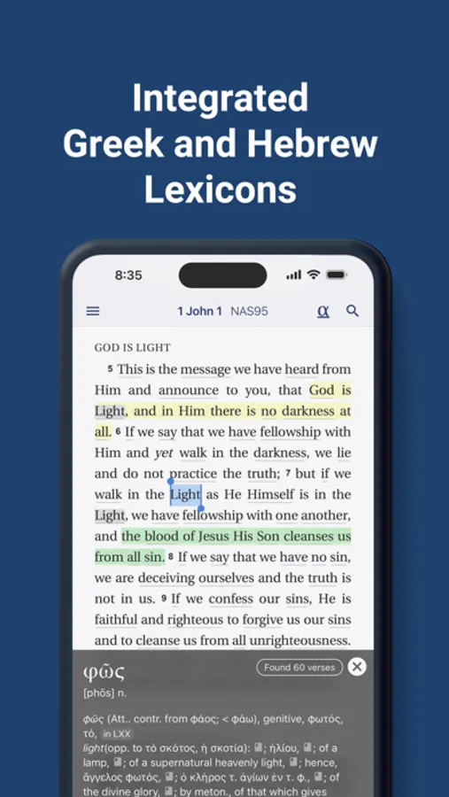 This belief has driven every decision we've made designing Literal Word. The app is 100% free and functional even when you're offline. The NASB 1995, LSB, ESV, and KJV translations of the Bible were selected for faithfully utilizing a word-for-word instead of a thought-for-thought translation method. Each passage of the Bible is clean, customizable, and convenient to access, allowing the reader to focus exclusively on the God-breathed content. Word searches are simple but powerful, featuring a unique visual interface for organizing results with precision, and complete lexicons for original Hebrew and Greek words can be viewed with just a couple taps.