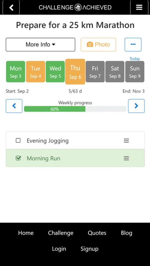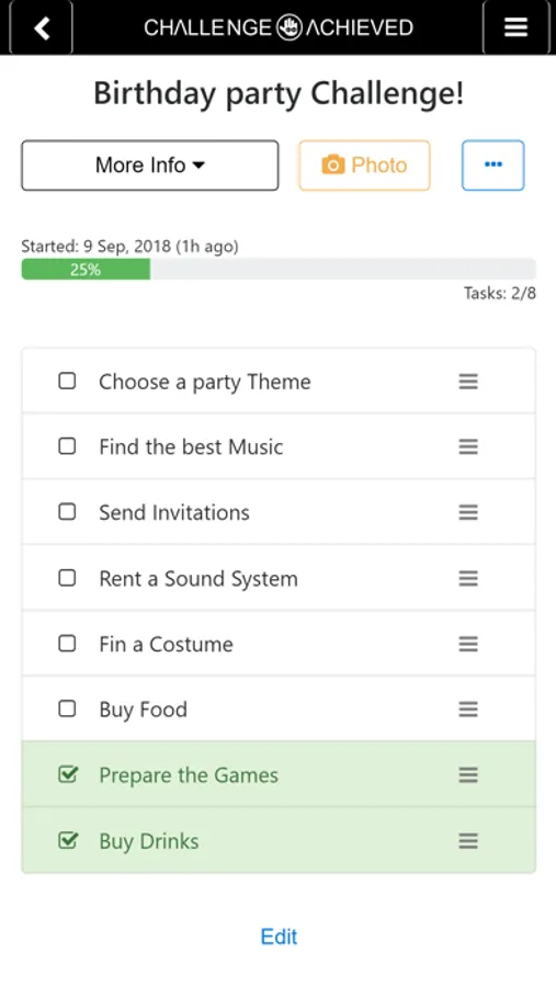 Create a new Challenge and Take your Hero's Journey with this new Motivation platform. Choose between daily, one time and number challenges. Track your progress by checking your tasks and share the Progress with the World.