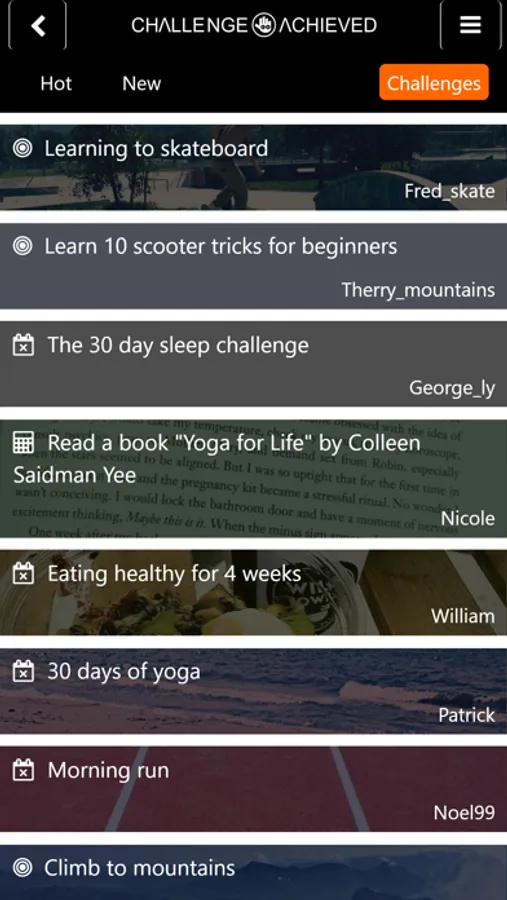 Send your challenge to friends and other people so that they can Accept your Challenge. Find challenges that are interesting to you and start it! Post Pictures of your progress and motivate others to follow your path.
