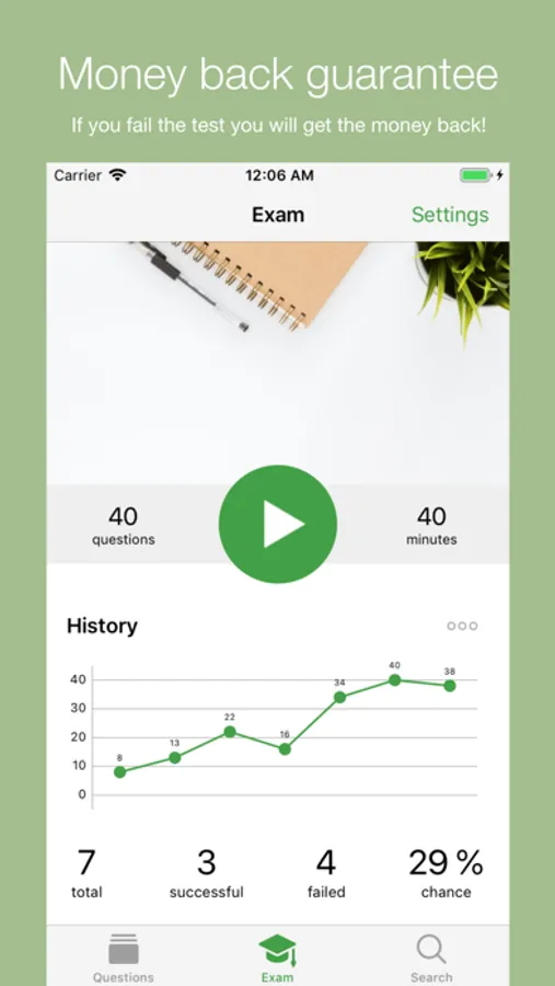 Money back guarantee! If you fail to pass the test, you will get the money paid for the application back.