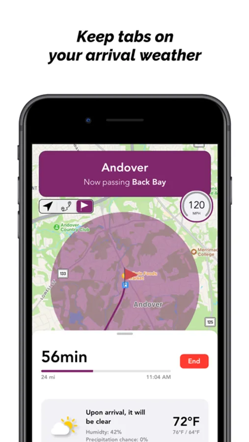 Destinations will tell you where you are currently passing, your arrival time, how long until you’re there, how far away you are, and even your speed!